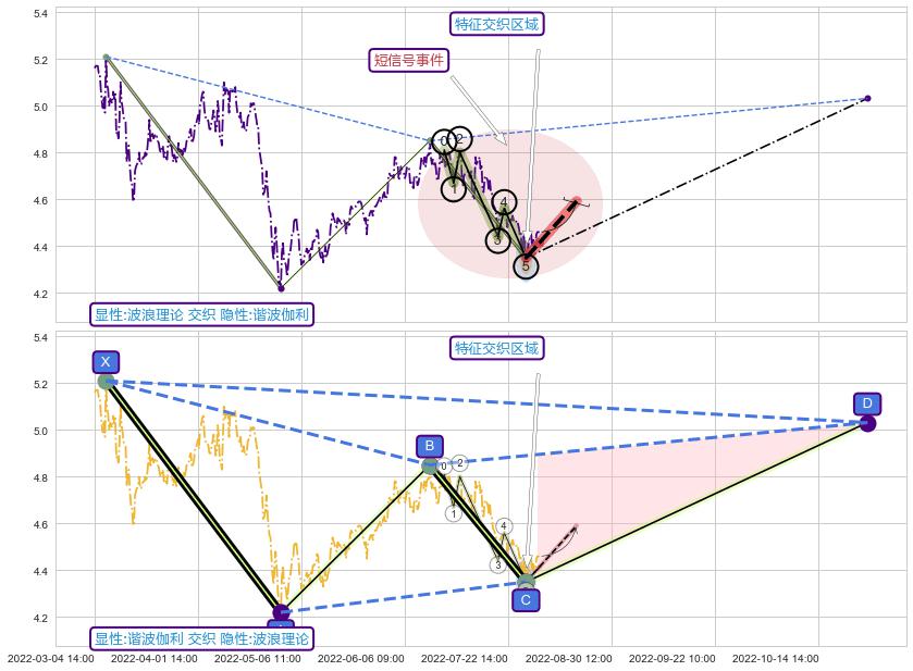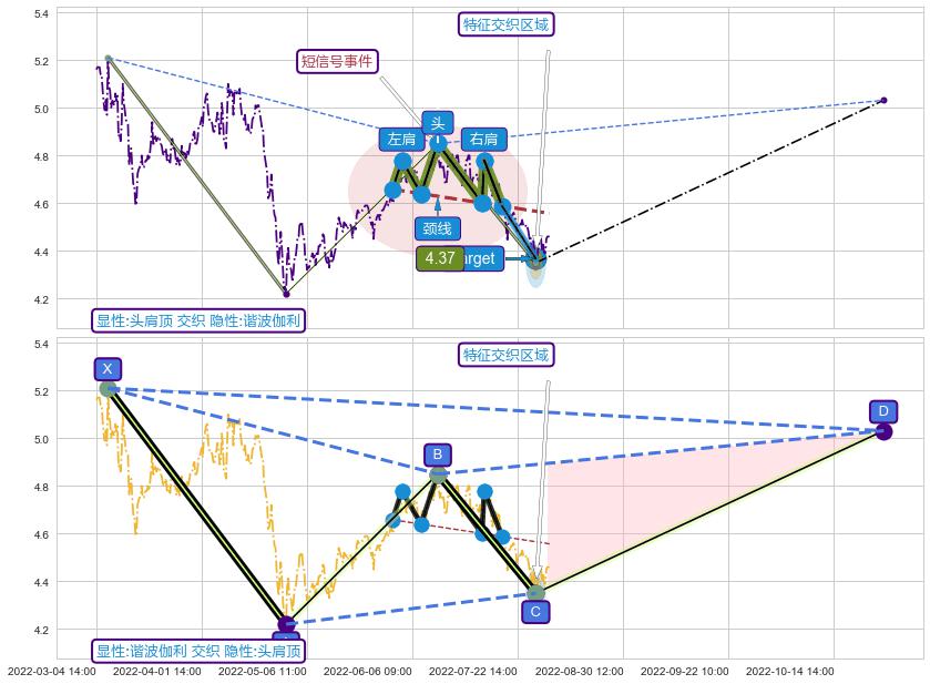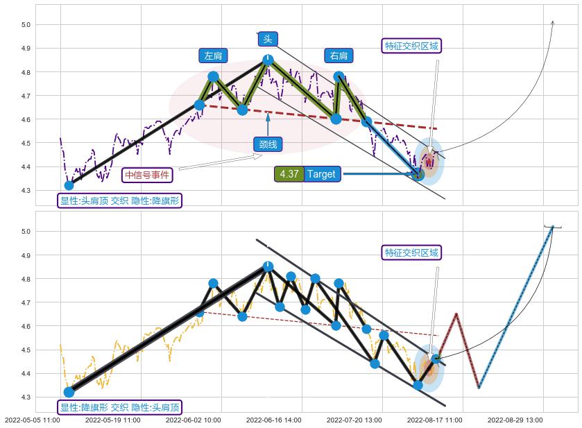 ♘ 在最后的下跌阶段2022-06-01 10:00至2022-08-11 13:00,存在 持续未破位的阻力位 ,阻力价格4.70,可信任强度84.17%,其距离最后价格4.46相差 +5.28%