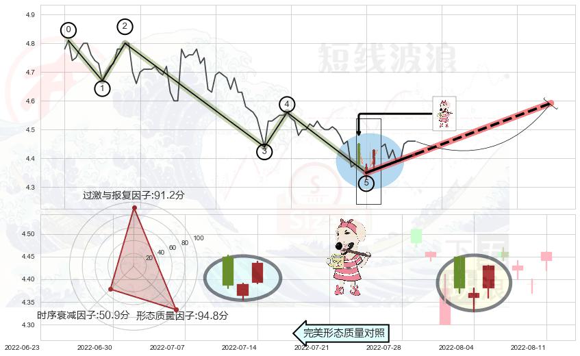 ♘ 阻力价格位4.65,可信任强度81.41%,距离最后交易2022-08-12 14:00形成的收盘价格4.46相差 +4.17%