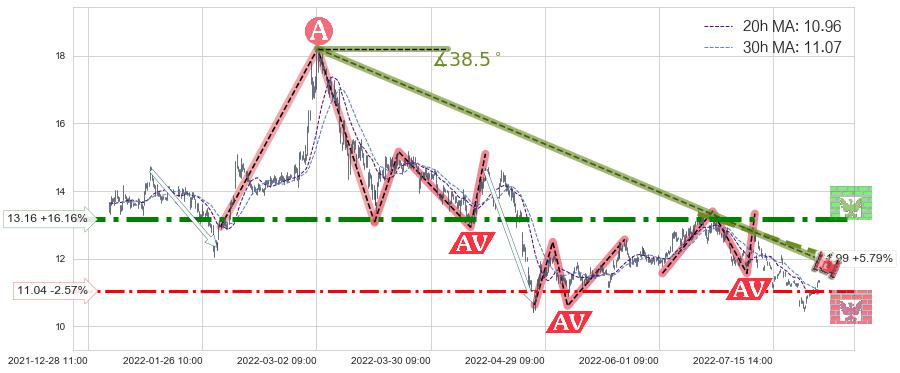♘ 阻力价格位13.16,可信任强度94.34%,距离最后交易2022-08-12 14:00形成的收盘价格11.33相差 +16.16%