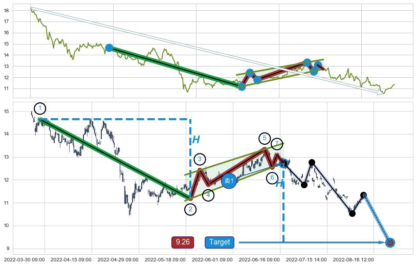 ➣ 最小中继整理跌幅→𝐇: 3.470 (𝐇旗杆的长度:旗杆起点→顶点)