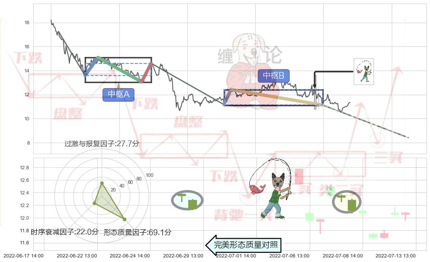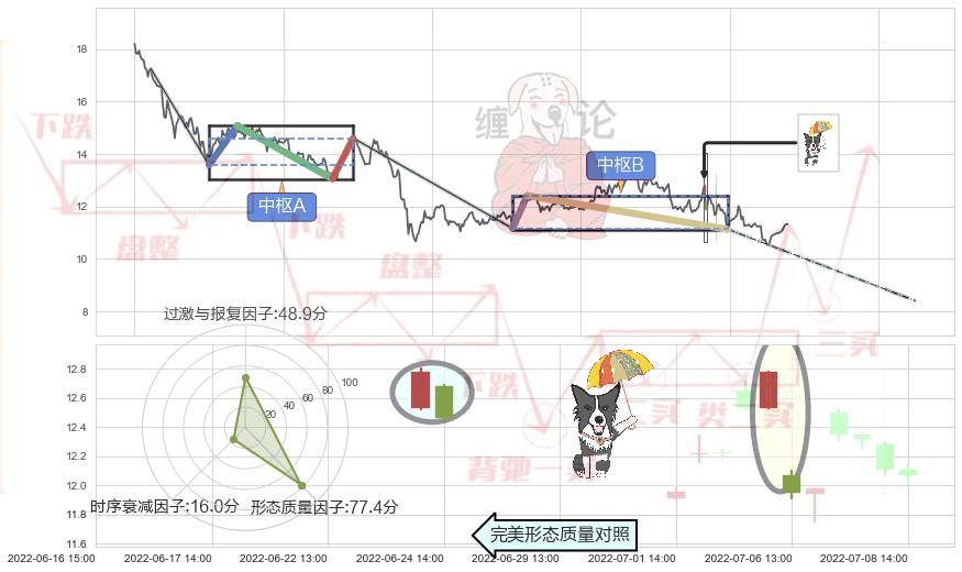 ➣ 下跌螺旋桨 + 缠论中枢点破位中枢B支撑下拉信号叠加后【目标达成率】中等,【看空】信号叠加【存续影响中等】