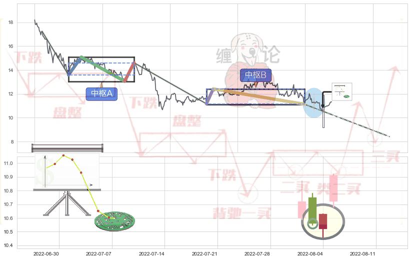 ➢ 缠论中枢点:猜想破位中枢B后持续下拉 → 下跌 → 破位中枢B支撑 → 持续趋势跟踪