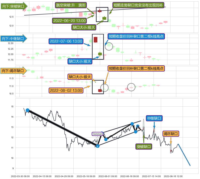 ➢ 2022-08-02 13:00形成:向下跳空【竭尽】缺口