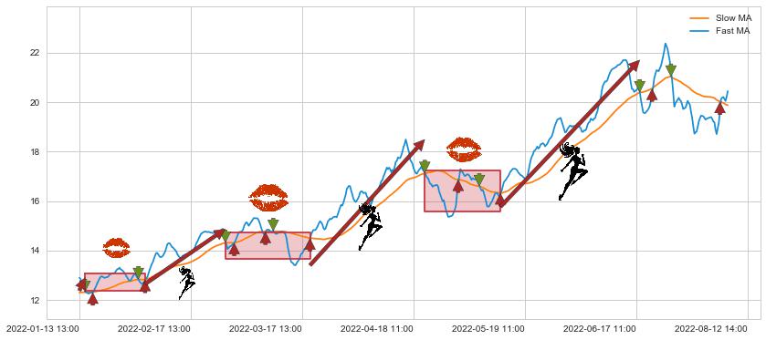 04-20 11:00至05-13 09:00 慢线与快线多次接触,存在上下穿越,有缠绕