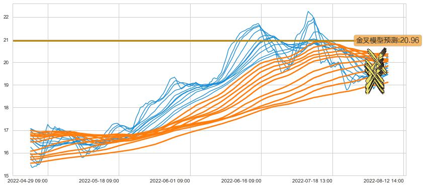 ➣ 60小时均线于(08-08 14:00: 20.08)形成【金叉】基于【金叉历史模型】预测金叉后最高波峰价格: 21.78, 金叉后最高价格20.91,尚未达到预测最高波峰价格, 预期继续上涨