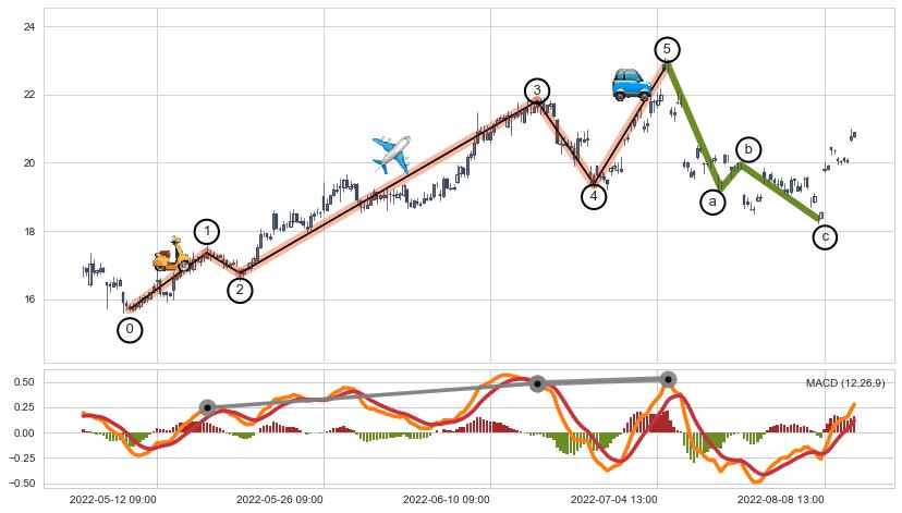 ➣ ['回调abc识别为: 【锯齿型调整浪】 ', '锯齿型:子浪535结构 ⓑ点振幅较小,ⓒ点继续发力远超ⓐ点结束位置']