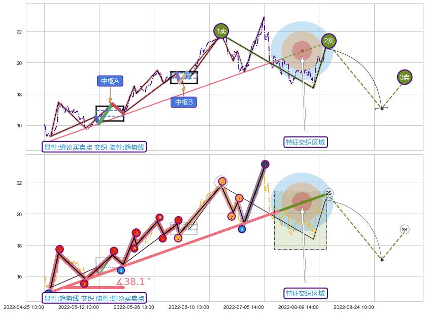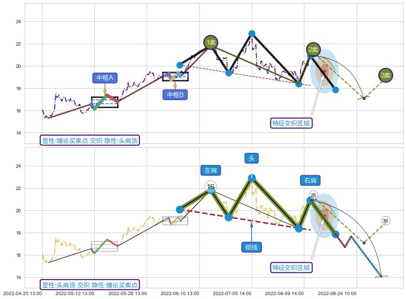 ➣ 缠论买卖点:猜想2卖持续蓄力下跌至3卖 → 下跌 → 风险信号 → 小趋势跟踪