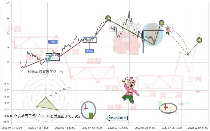 ➢ 🕰 价格走势在2022-07-22 13:00:00至2022-07-22 13:00:00期间形成看涨(低位)倒锤头线,残存影响值:3.67