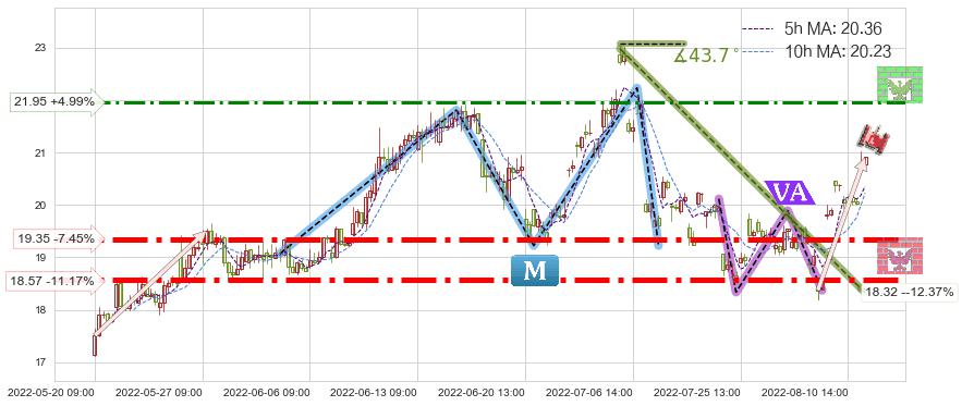 ♘ 支撑价格位19.35,可信任强度86.30%,距离最后交易2022-08-12 14:00形成的收盘价格20.91相差 -7.45%