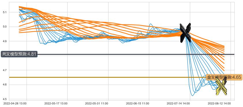 ➣ 80小时均线于(07-11 14:00: 4.96)形成【死叉】基于【死叉历史模型】预测死叉后最低波谷价格: 4.81, 死叉后最低价格4.51,已经下跌超出预测最低波谷价格, 预期反弹