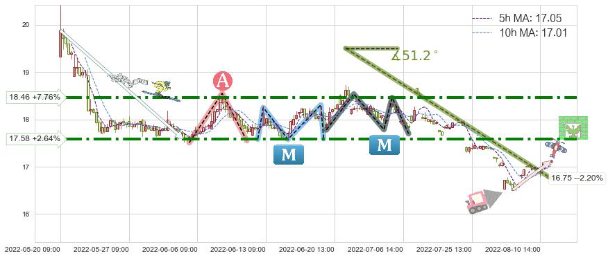 ♘ 阻力价格位17.58,可信任强度84.37%,距离最后交易2022-08-12 14:00形成的收盘价格17.13相差 +2.64%