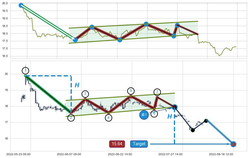 ➣ 最小中继整理跌幅→𝐇: 2.300 (𝐇旗杆的长度:旗杆起点→顶点)
