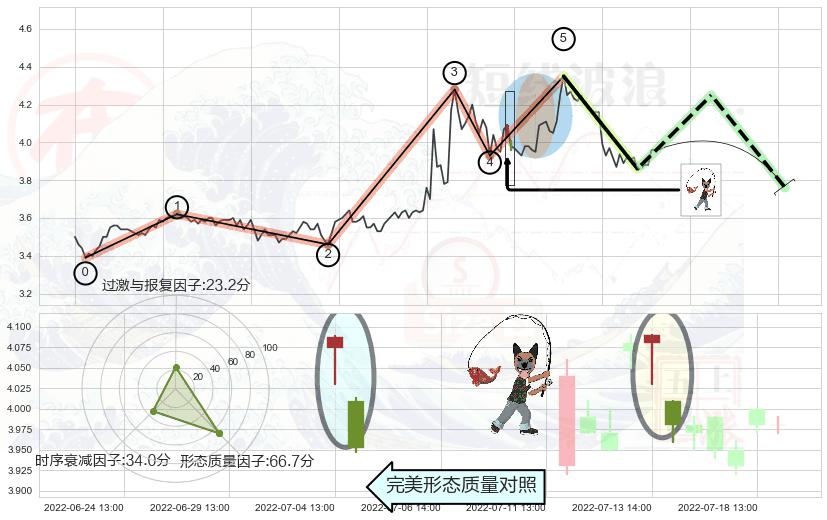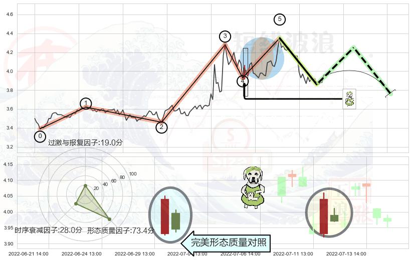 ➢ 🕰 价格走势在2022-07-14 13:00:00至2022-07-18 13:00:00期间形成高档五阴线,残存影响值:-1.97