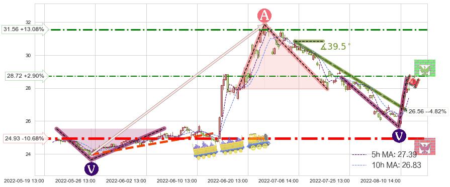 ♘ 阻力价格位28.72,可信任强度50.60%,距离最后交易2022-08-12 14:00形成的收盘价格27.91相差 +2.90%