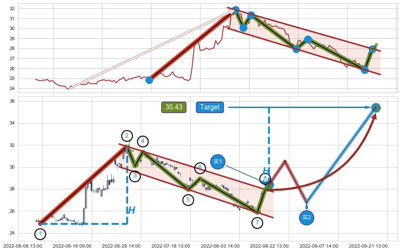➣ 最小中继整理涨幅→𝐇: 7.03 (𝐇旗杆的长度:旗杆起点→顶点)