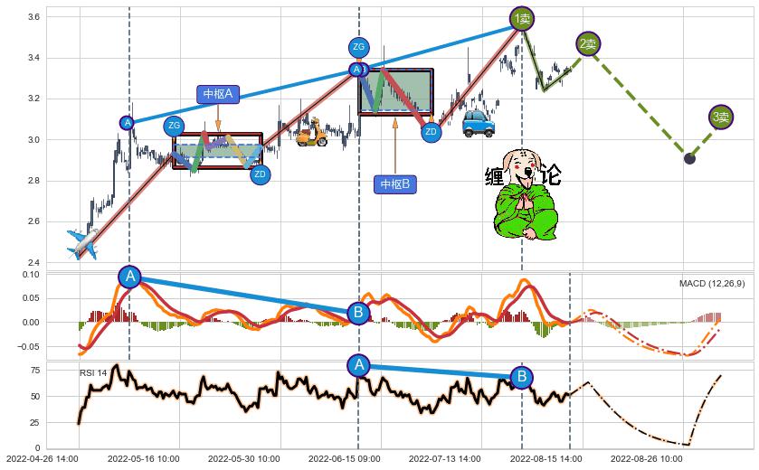 ➣ 【已完成】缠论 起点:04-26:14,完成第1中枢A,完成第2中枢B,终点:07-27:14,缠论共221交易小时