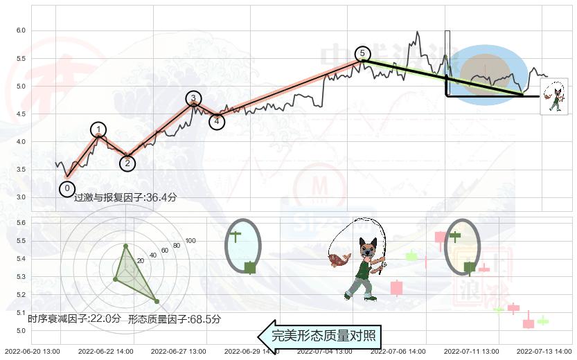 从2022-06-09 09:00至2022-06-20 13:00,共包含36个小时,阶段股价上涨4.78%,阶段股价变动位移路程比: 1 : 8