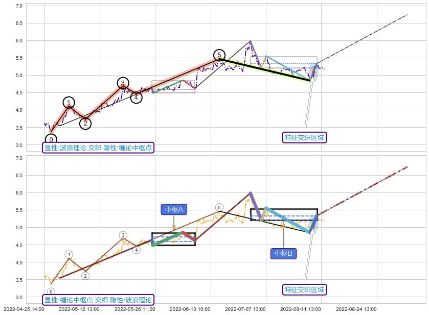 ➢ 波浪理论与缠论中枢点信号事件周期长度级别相同,同周期信号事件