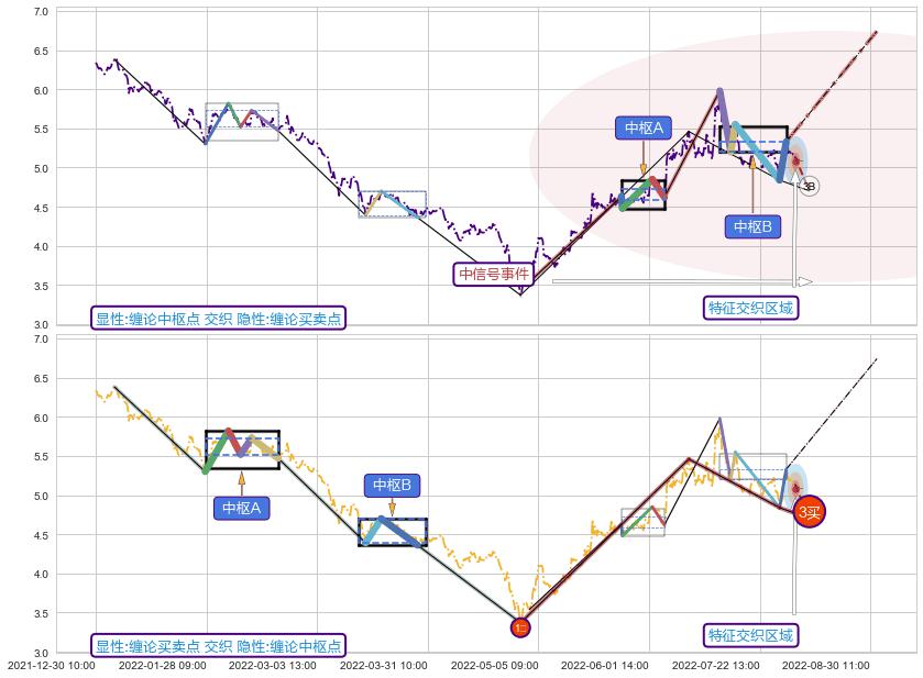 从2022-03-23 14:00至2022-04-27 09:00,共包含112个小时,阶段股价下跌-30.81%,阶段股价变动位移路程比: 1 : 2
