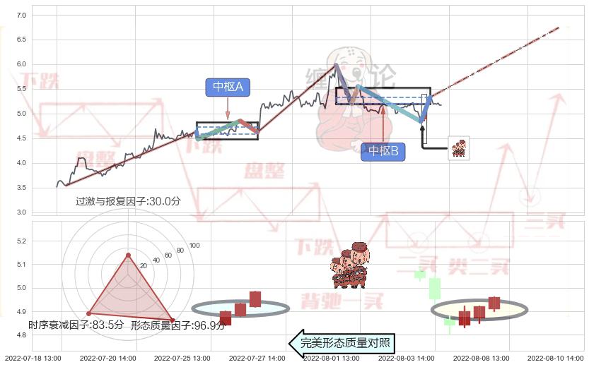 从2022-08-04 13:00至2022-08-12 14:00,共包含14个小时,阶段股价上涨6.79%,阶段股价变动位移路程比: 1 : 2