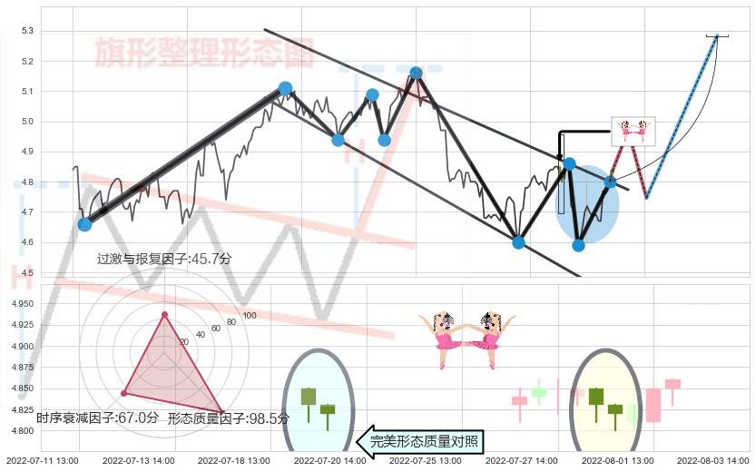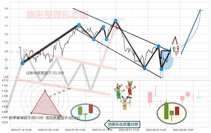 ➣ 【未确认突破,预测即将形成突破】降⚑旗形起点:05-06:11, 预测突破点:08-15:09,形态共232交易小时