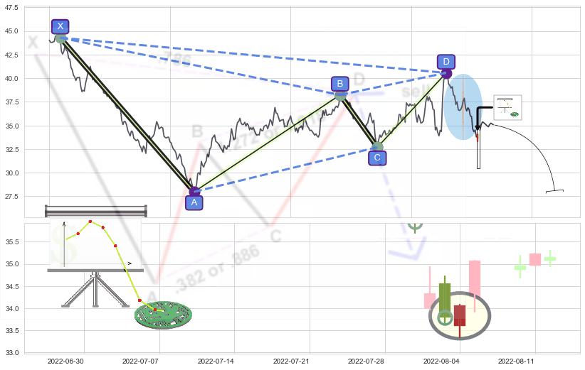 ➢ 谐波伽利:已到达d点:猜想c拉升到达d点后泄力性下沉下跌(均值回复)