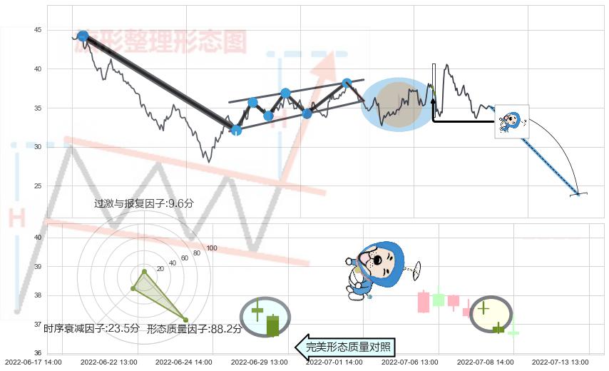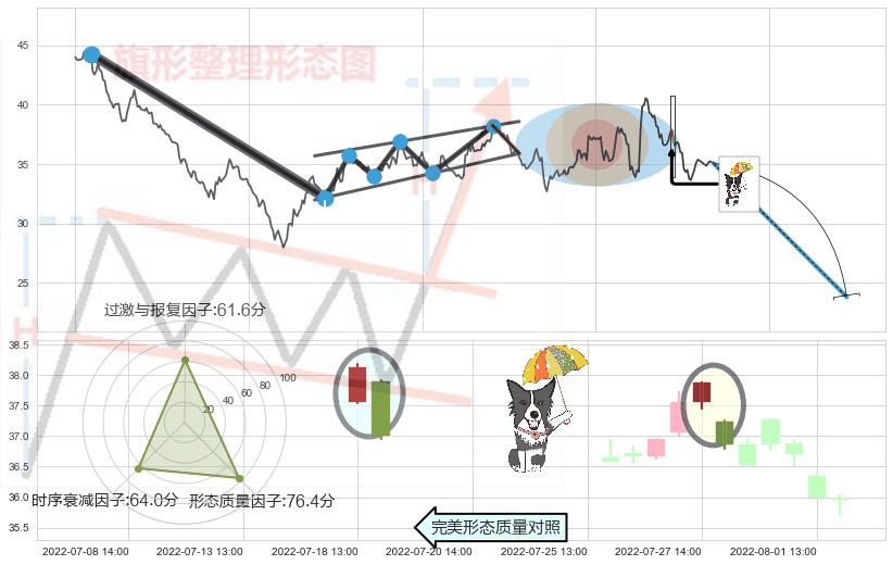 ➢ 下跌螺旋桨 🔜 升旗形支撑破位转换阻力下跌 综合量化分数:44.34 【偏空】