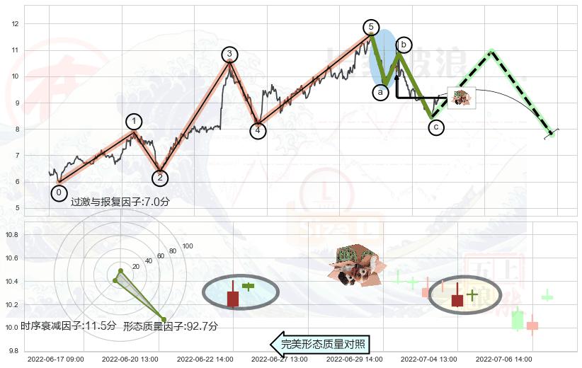 ➣ 顶部尽头线(下山虎) + 波浪理论上涨浪:浪5回调拐点信号叠加后【目标达成率】中等,【看空】信号叠加【存续影响中等】