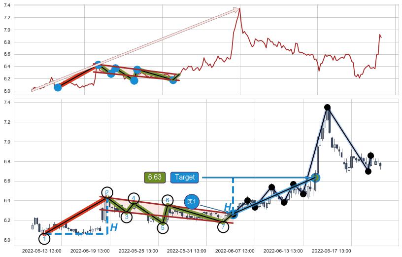➢ AI预测: 假定反转如期而至,第❶价格目标位置(08-25:14, 6.65)