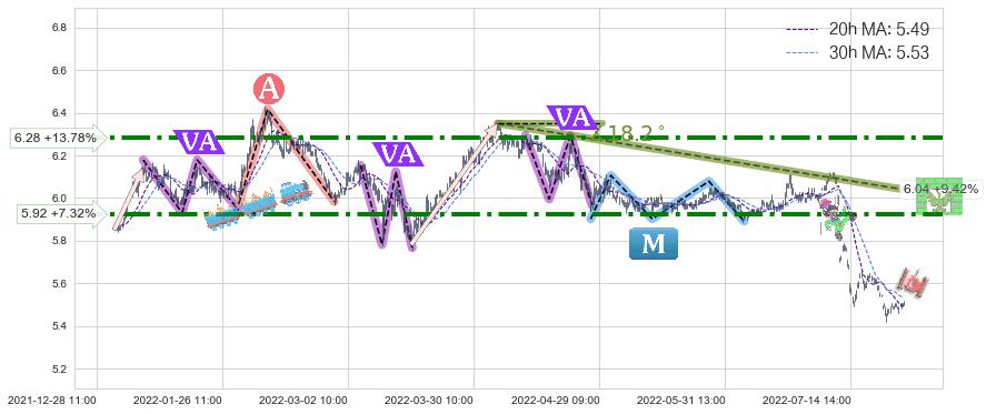 ♞ 20小时均线:5.49,30小时均线:5.53→ 快线<慢线
