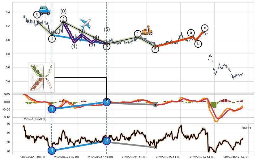 ➢ 上涨螺旋桨形态 + 谐波赛福目标❸拐点支撑上涨信号叠加后【目标达成率】低,【看多】信号叠加【存续影响大】