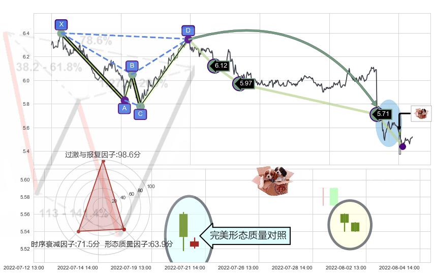 ➢ 🕰 价格走势在2022-08-01 13:00:00至2022-08-01 14:00:00期间形成底部尽头线(上山虎),残存影响值:6.33