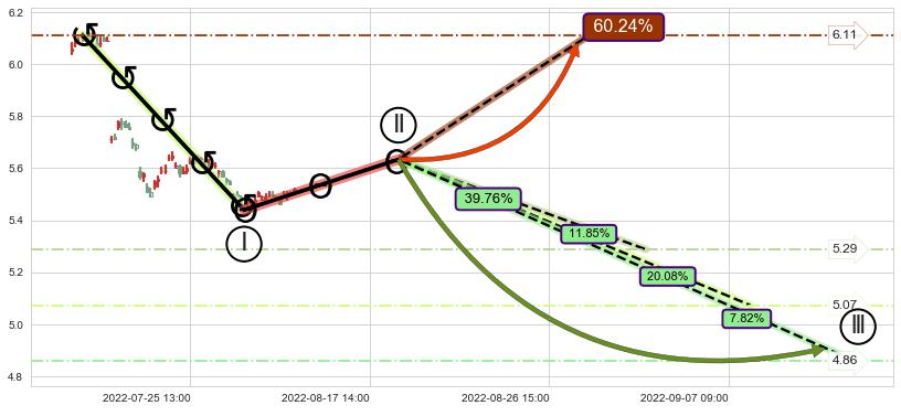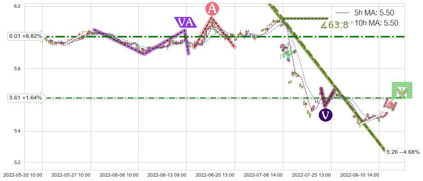 ♘ 阻力价格位5.61,可信任强度41.61%,距离最后交易2022-08-12 14:00形成的收盘价格5.52相差 +1.64%