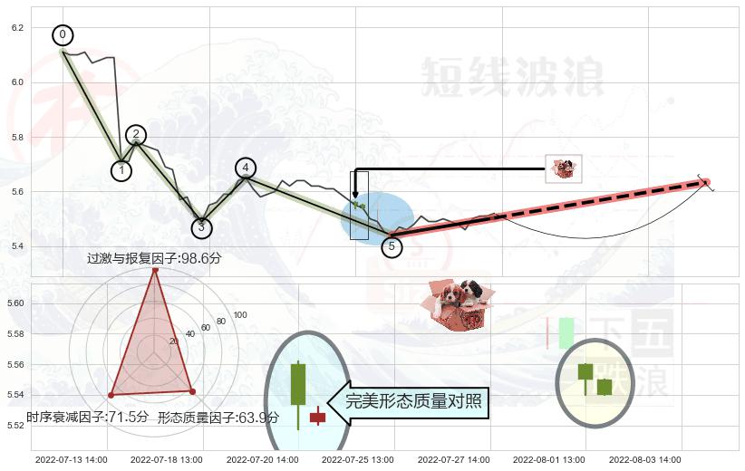 ➢ 🕰 价格走势在2022-08-01 13:00:00至2022-08-01 14:00:00期间形成底部尽头线(上山虎),残存影响值:6.33