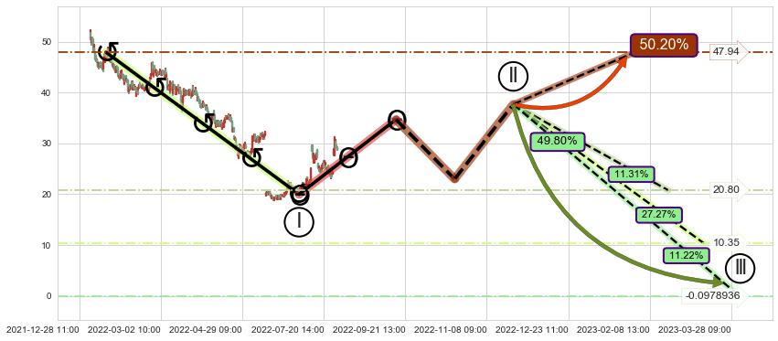 ➢ 高概率大级别循环下跌浪被破坏,反转向上(突破5浪起点)概率50.20%
