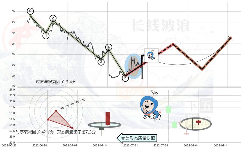 ➢ 上涨螺旋桨形态 🔜 波浪理论下跌浪:浪5反弹拐点 综合量化分数:52.98 【中性】