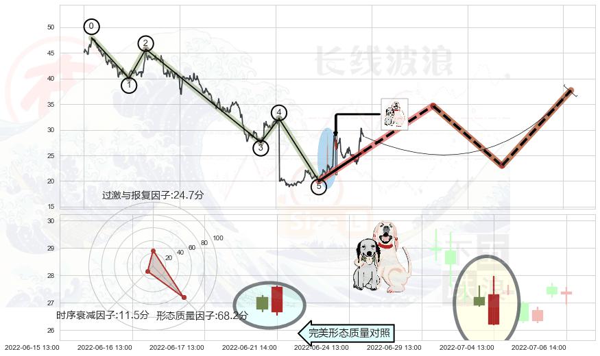 ➢ 阳包阴形态 🔜 波浪理论下跌浪:浪5反弹拐点 综合量化分数:53.51 【中性】