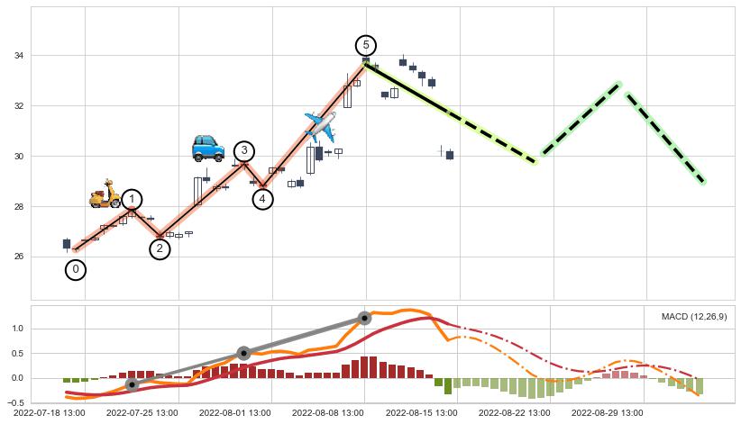 ➣ 波浪理论:猜想达到c点后小反弹终止反转下跌 → 下跌 → 【拐点】临近 → 阶段均值回复结束后继续大周期趋势跟踪