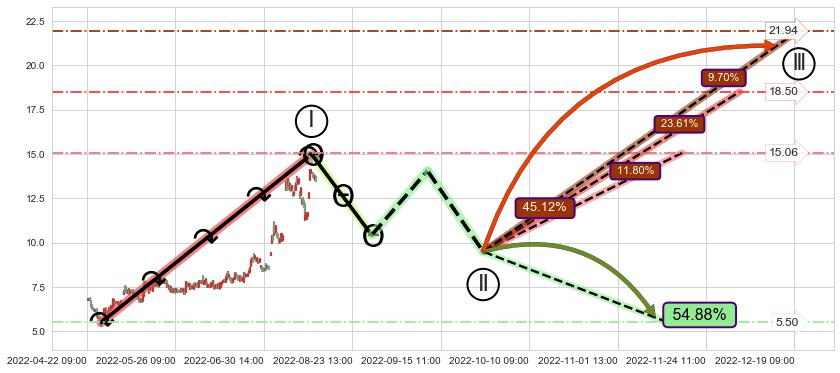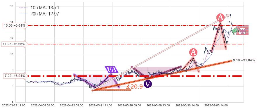 ♘ 支撑价格位7.25,可信任强度99.00%,距离最后交易2022-08-12 14:00形成的收盘价格13.48相差 -46.21%