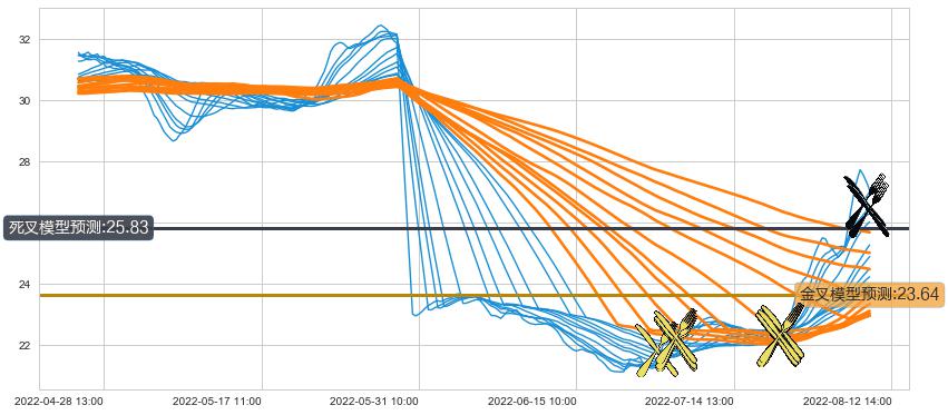 ➢ 30小时均线于(07-25 14:00: 22.40)形成【金叉】基于【金叉历史模型】预测金叉后最高波峰价格: 23.46, 金叉后最高价格27.95,已经上涨超出预测最高波峰价格, 预期回调
