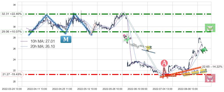 ♘ 阻力价格位32.31,可信任强度72.05%,距离最后交易2022-08-12 14:00形成的收盘价格26.40相差 +22.40%