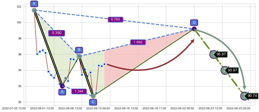 ➣ 未完成【赛福】形态起点X: 07-26:14, 已到达C点: 08-10:13, 预测最终D点: 08-22:09, 共57交易小时