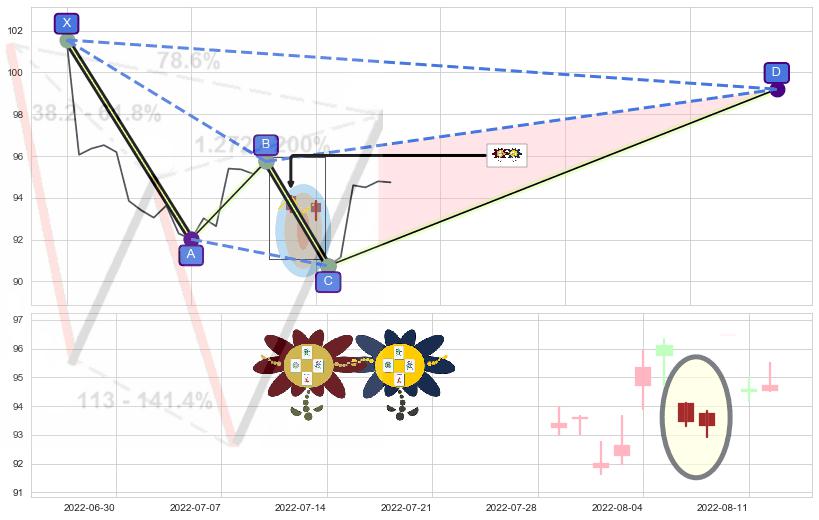 ➣ D点拟合预测价格99.20,距离最后交易收盘价格94.74相差 +4.71%