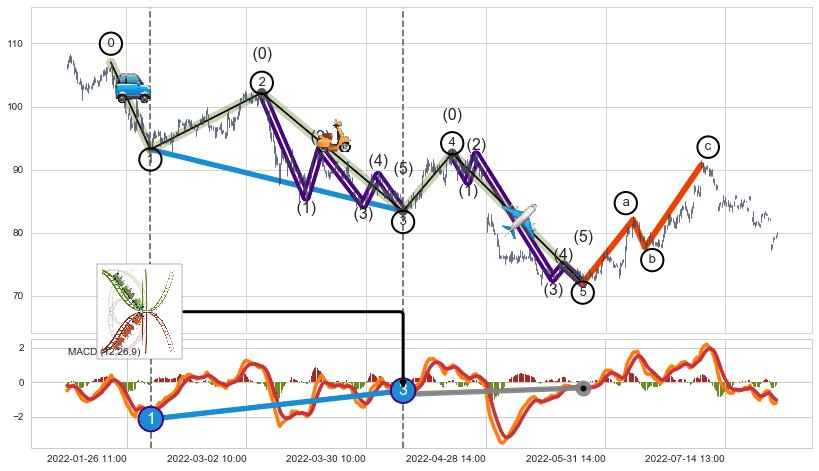 ➢ 波浪理论与缠论买卖点信号事件周期长度级别相同,同周期信号事件