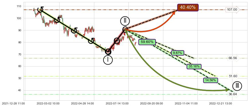 ➣ D点拟合预测价格97.01,距离最后交易收盘价格79.98相差 +21.30%