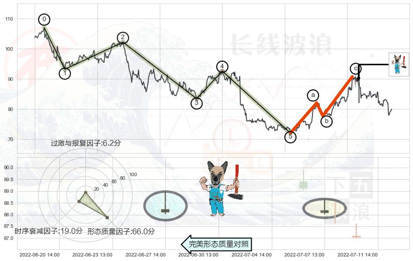 ➣ ['回调abc识别为: 【锯齿型调整浪】 ', '锯齿型:子浪535结构 ⓑ点振幅较小,ⓒ点继续发力远超ⓐ点结束位置']