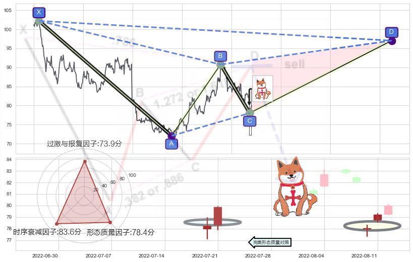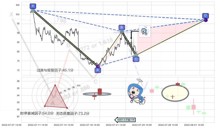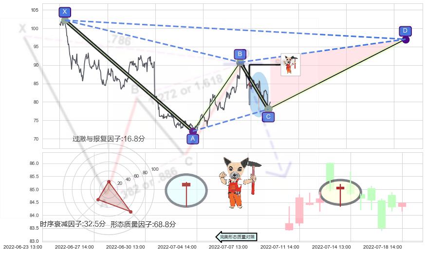 ➣ BC回撤位置在AB的68.0%,符合形态要求