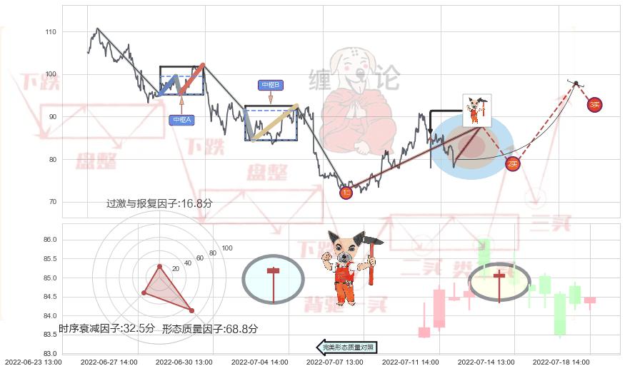 ➢ 🕰 价格走势在2022-07-14 14:00:00至2022-07-15 13:00:00期间形成双针探底,残存影响值:3.41