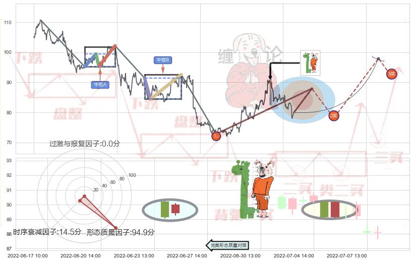 ➢ 🕰 价格走势在2022-07-05 13:00:00至2022-07-05 14:00:00期间形成中流砥柱形态,残存影响值:1.92