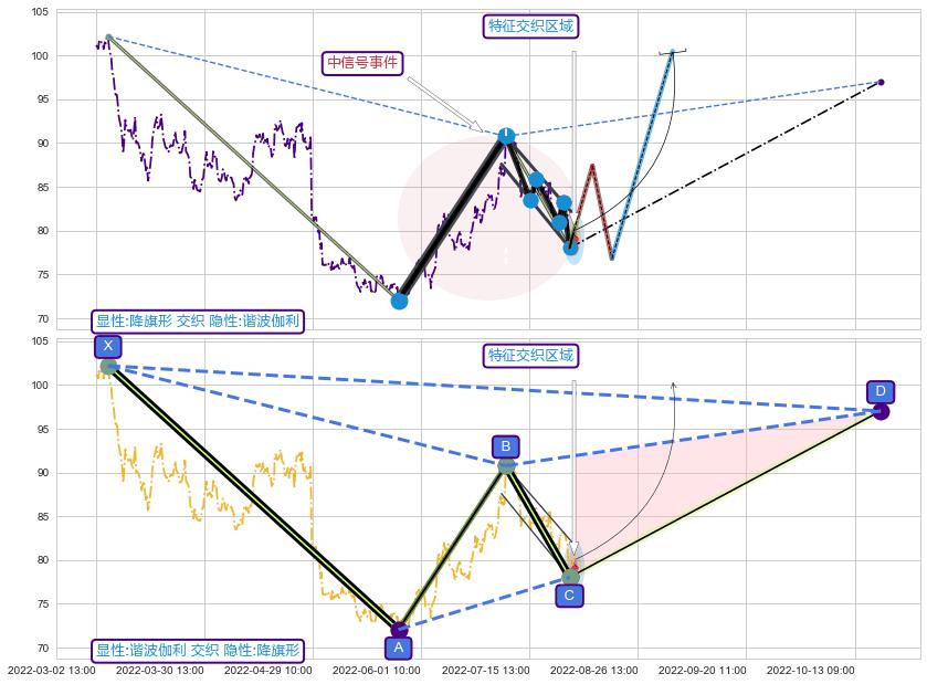 ➢ 降旗形属【中级别信号事件】谐波伽利属【长级别信号事件】中长周期组合信号事件,中长事件长度比37.82%